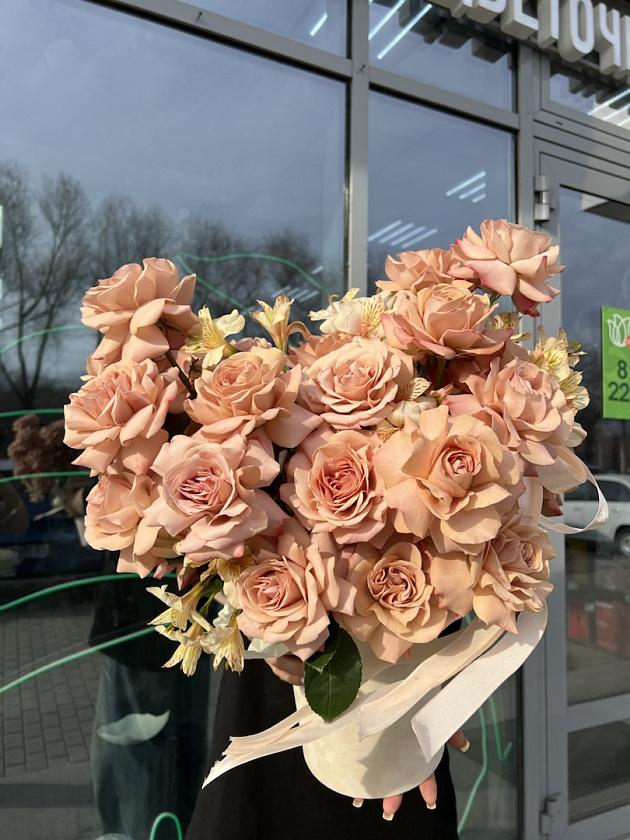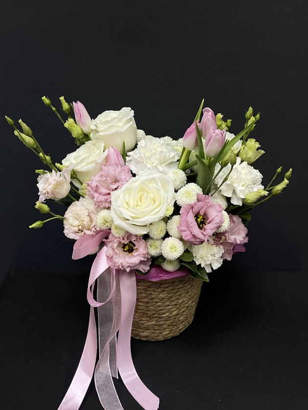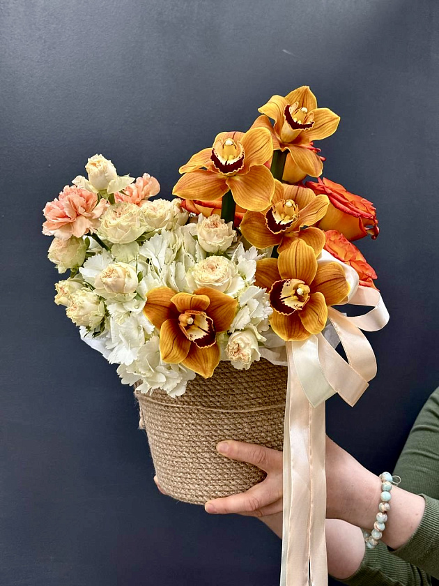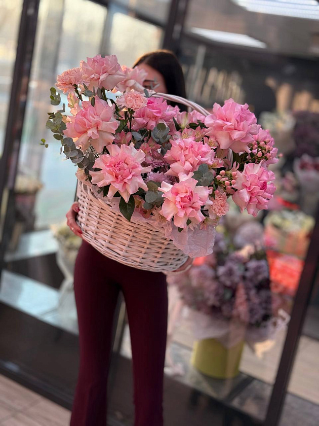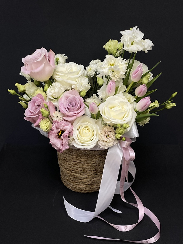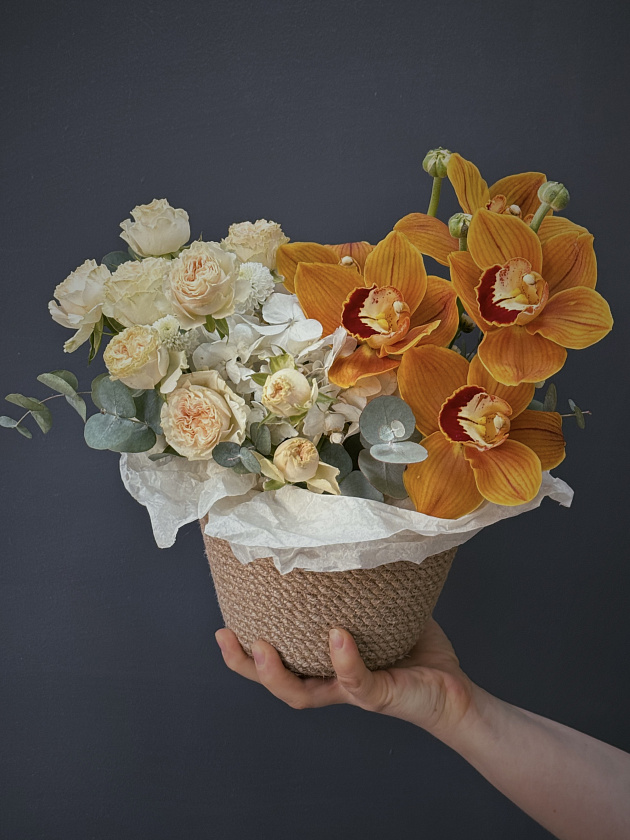 Собираем изысканные моно- и микс-композиции в корзинах, крафте, ящиках и шляпных коробках.