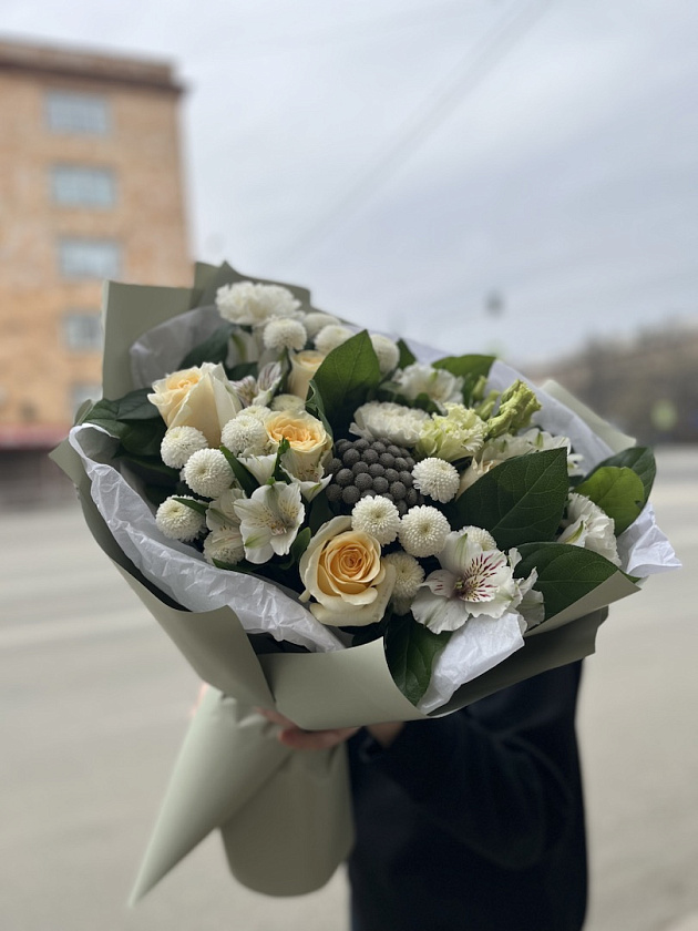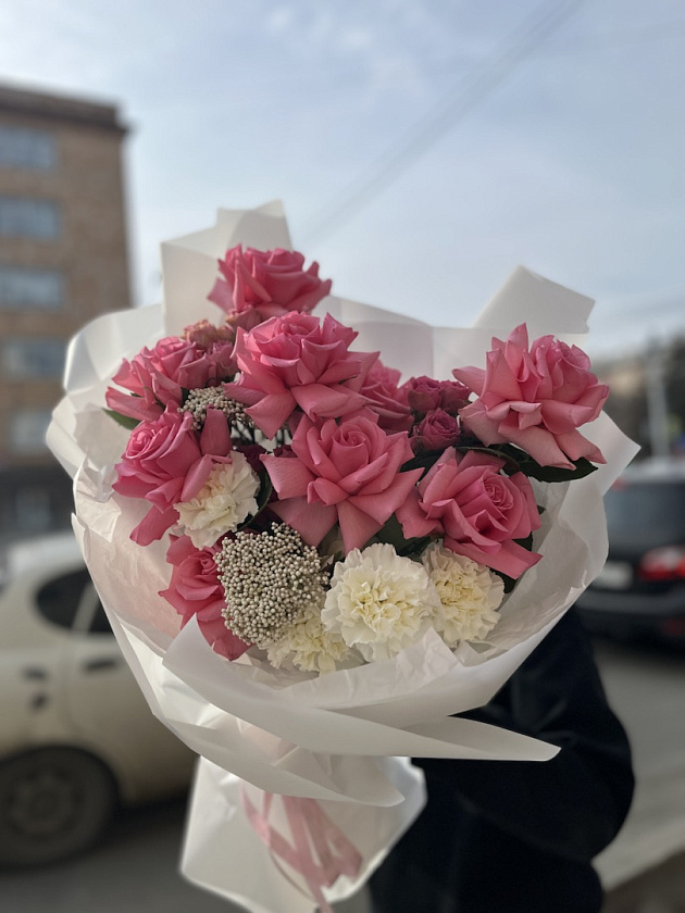 На стоимость композиции влияет упаковка, сорта, количество цветов, присутствие зелени или декоративных элементов. Цены располагаются под каждым товаром на сайте.