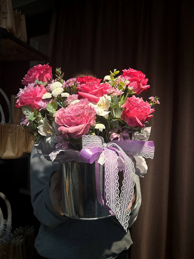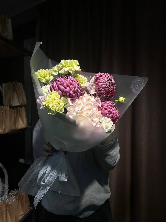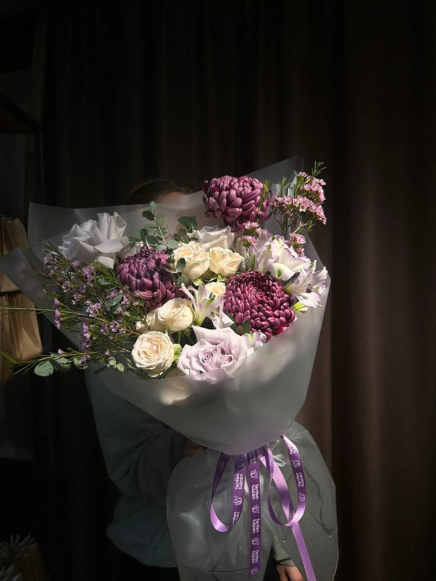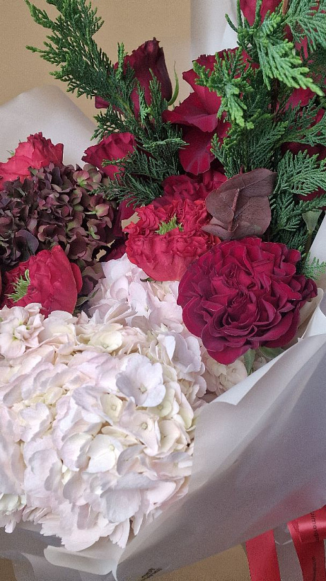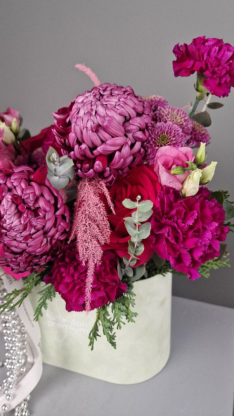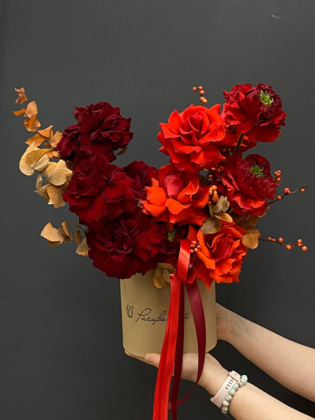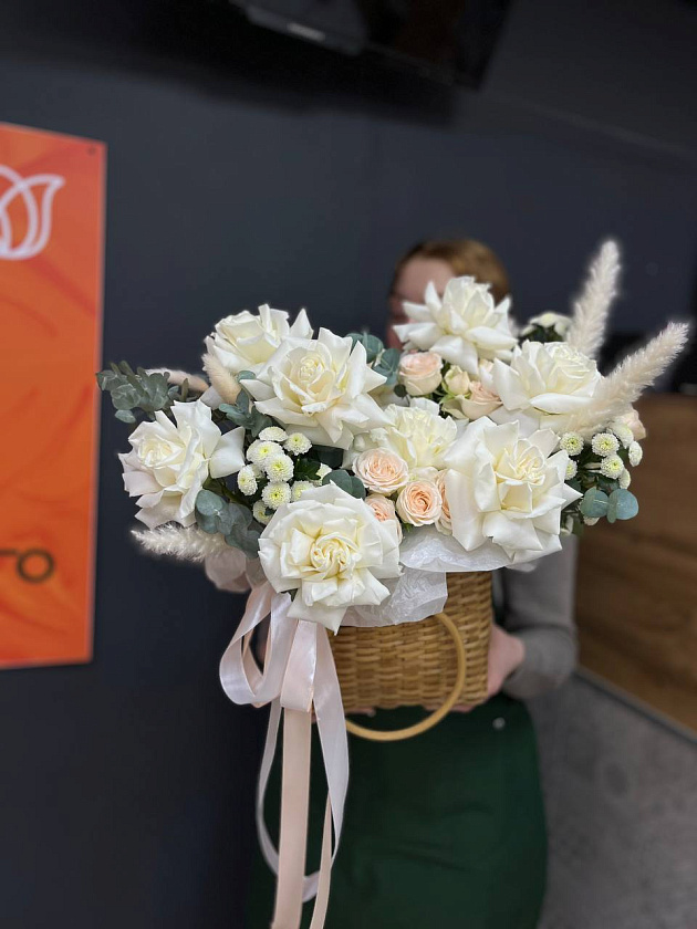 Бутоны живых цветов уникальны в насыщенности окраса и формах, поэтому возможны минимальные отличия фотографии на сайте от заказа, собранного флористом. Это не меняет общий объем и гамму композиции.
