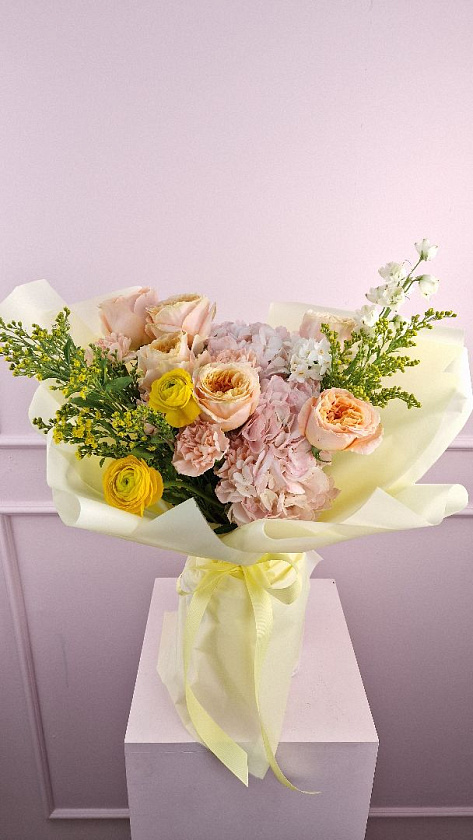 • букеты в яркой, светлой или нежной гамме;