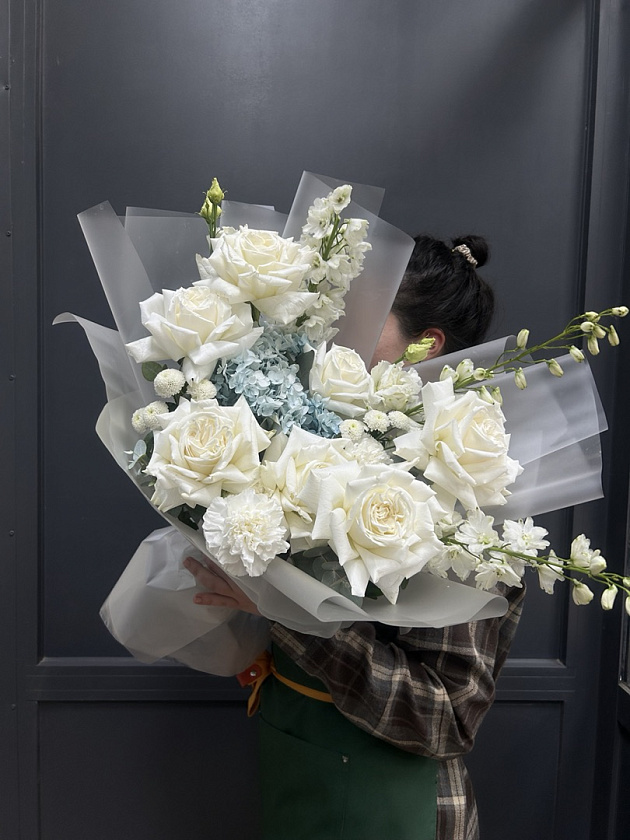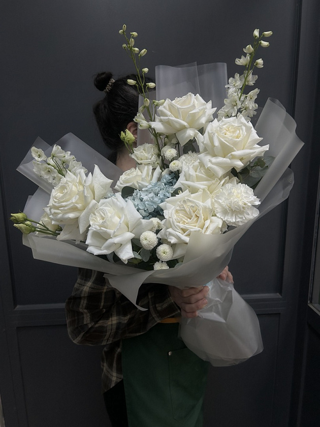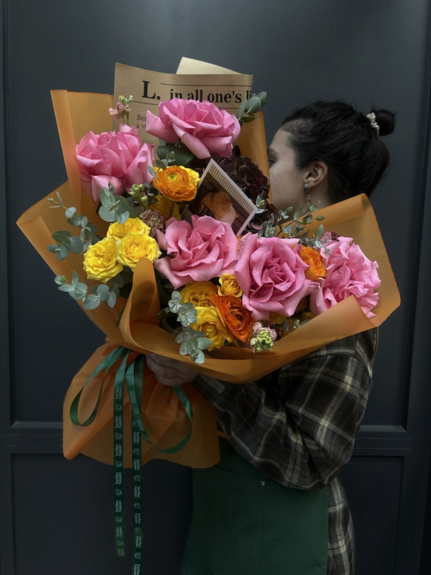 Бутоны живых цветов уникальны в насыщенности окраса и формах, поэтому возможны минимальные отличия фотографии на сайте от заказа, собранного флористом. Это не меняет общий объем и гамму композиции.