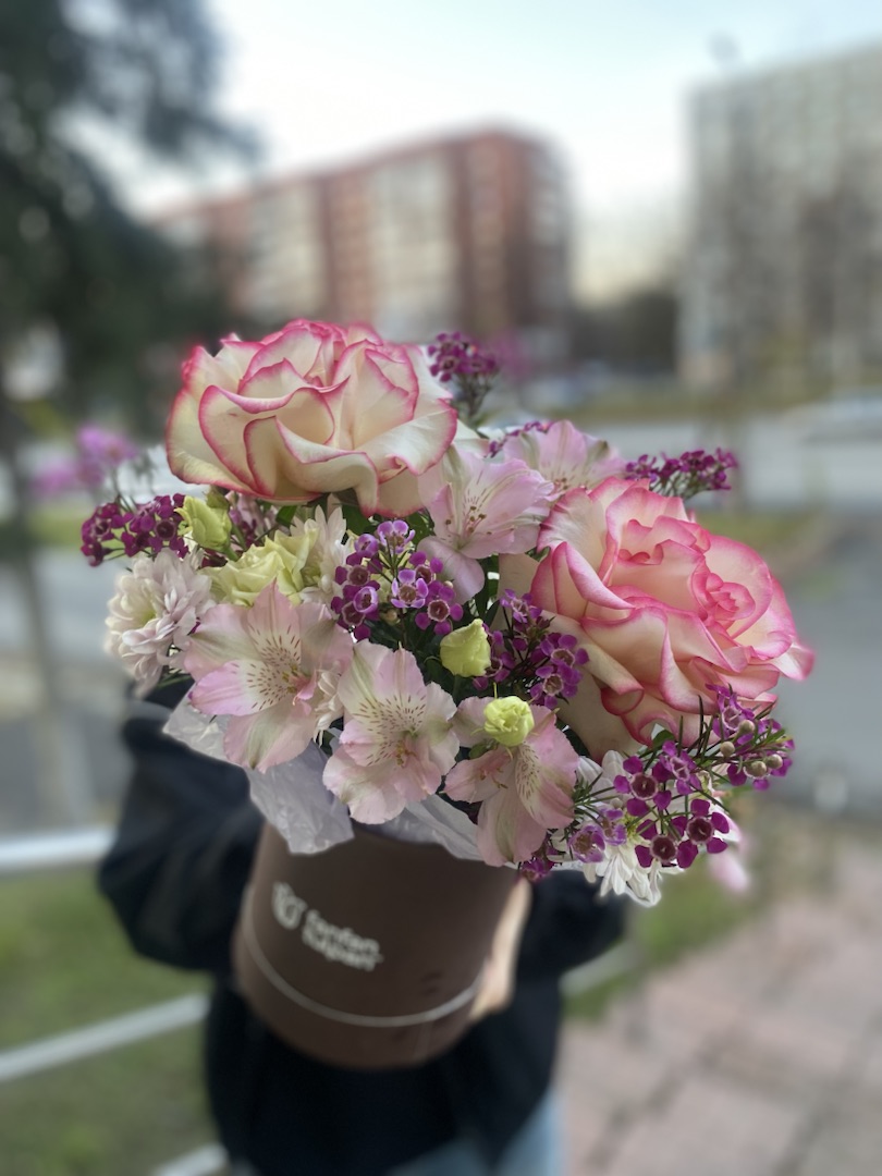 Данная цветочная композиция под запрос. Это значит что возможно у нас отсутствует какой-либо цветок в составе букета. Но мы готовы собрать похожую композицию, не чуть не менее красивую чем эта. Вы можете оставить заявку. И мы свяжемся с вами и предложим возможные варианты.