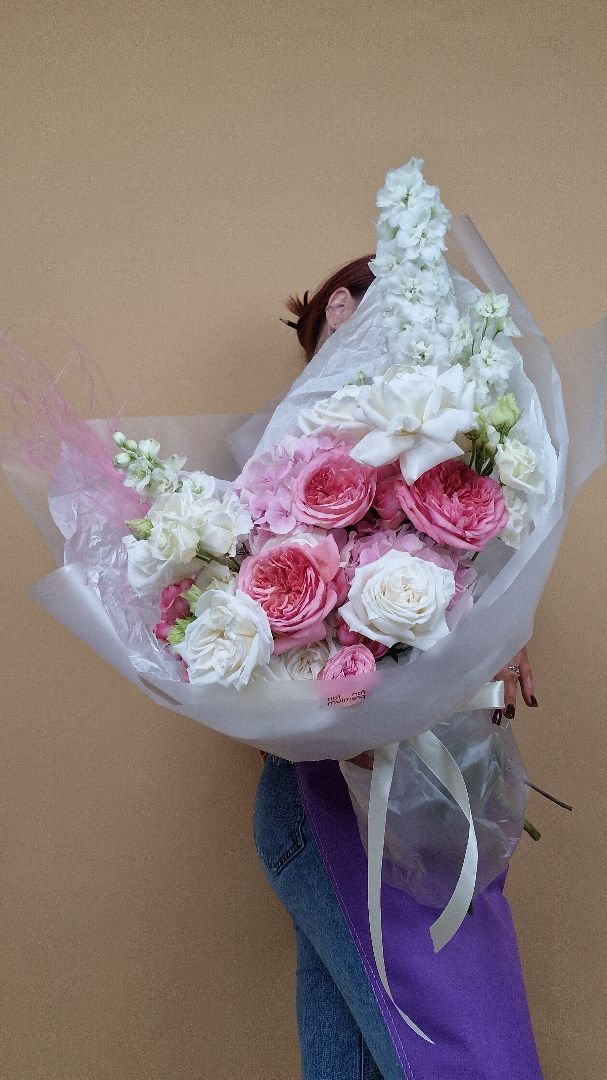 Данная цветочная композиция под запрос. Это значит что возможно у нас отсутствует какой-либо цветок в составе букета. Но мы готовы собрать похожую композицию, не чуть не менее красивую чем эта. Вы можете оставить заявку. И мы свяжемся с вами и предложим возможные варианты.