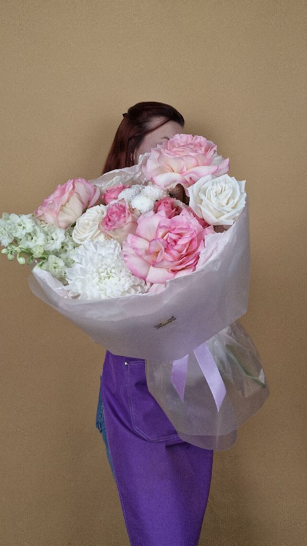Данная цветочная композиция под запрос. Это значит что возможно у нас отсутствует какой-либо цветок в составе букета. Но мы готовы собрать похожую композицию, не чуть не менее красивую чем эта. Вы можете оставить заявку. И мы свяжемся с вами и предложим возможные варианты.