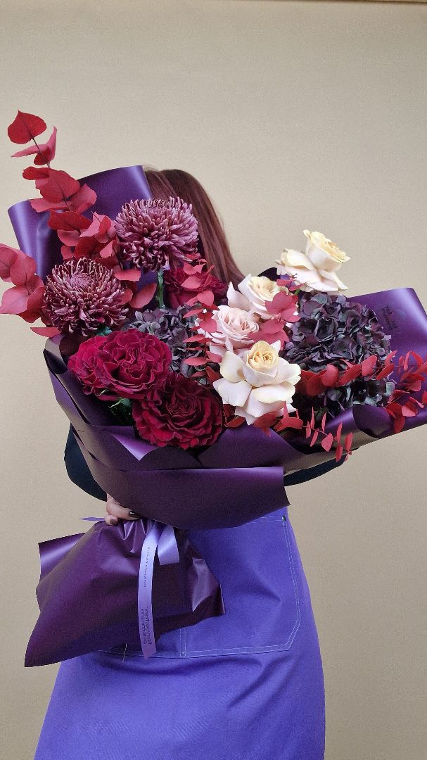 Данная цветочная композиция под запрос. Это значит что возможно у нас отсутствует какой-либо цветок в составе букета. Но мы готовы собрать похожую композицию, не чуть не менее красивую чем эта. Вы можете оставить заявку. И мы свяжемся с вами и предложим возможные варианты.