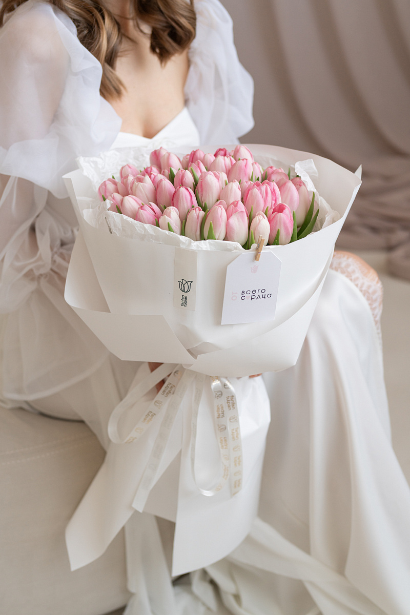 Букет из нежных розовых тюльпанов — словно признание в самых тёплых чувствах. Их мягкий оттенок передаёт трепетность первых эмоций, а изящная форма бутонов подчёркивает утончённость момента. Идеальный подарок для того, кто заставляет сердце биться чаще.