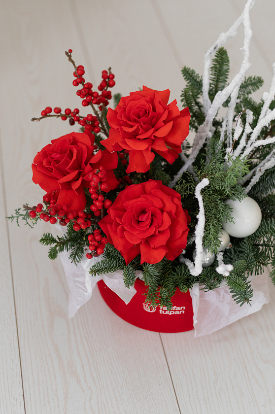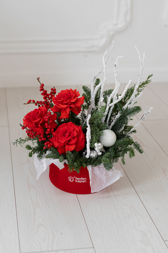 Цветы на Новый год помогут создать праздничное настроение себе и близким. Тематической композицией в зимнем стиле с хвойными ветками, сладостями, свечами можно украсить дом, офис, входную группу или зал ресторана.
