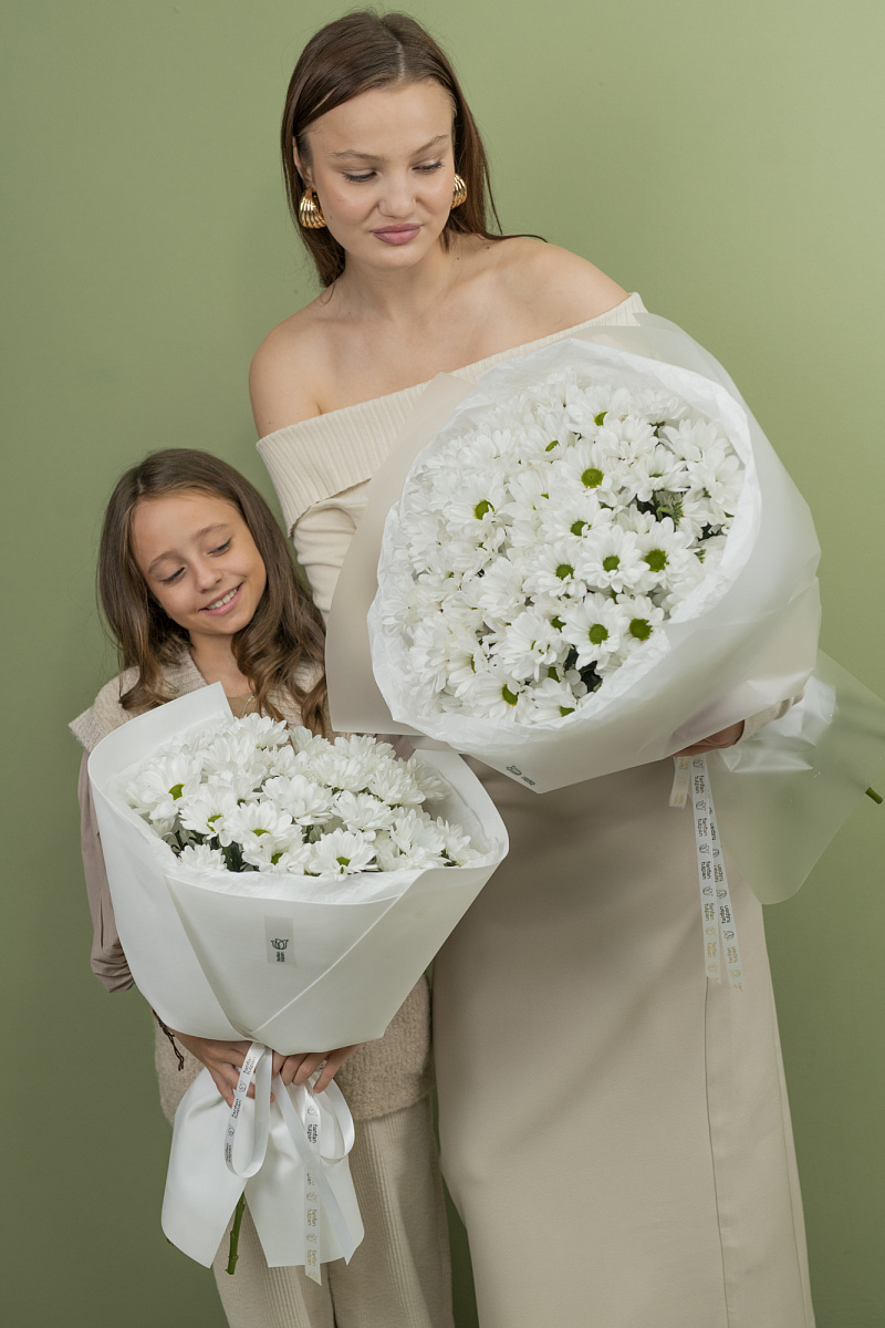 Кустовая хризантема – цветок,который поражает своим разнообразием оттенков и форм, что делает ее незаменимой для создания ярких и эффектных композиций. Букеты из кустовой хризантемы прекрасно дополняют интерьеры, придавая им особый шарм и индивидуальность. Сет состоит из 2 букетов размера S и M, в количестве 7 и 15 шт кустовых хризантем .