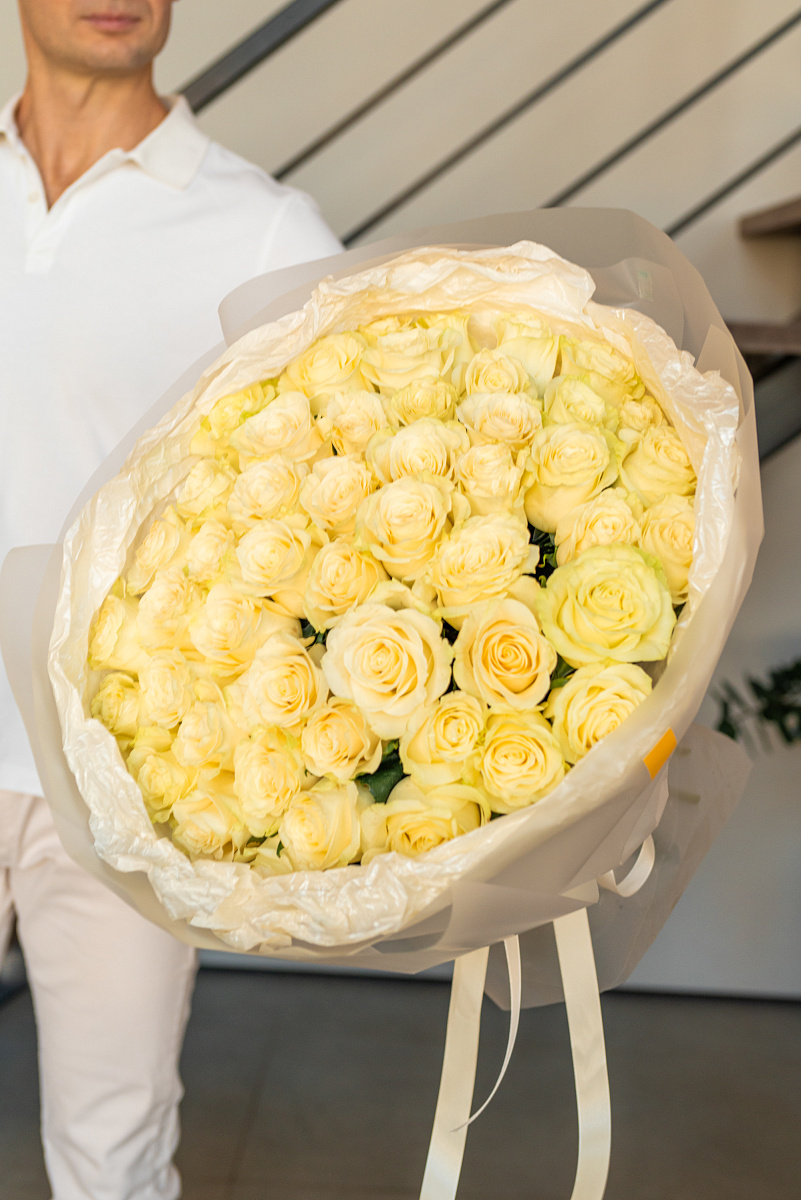 Букет из 51 белой розы - это чистота чувств и благородство намерений. Это возвышенное признание в искренних, светлых чувствах. Белый цвет олицетворяет непорочность, гармонию и вечность, а количество цветов подчёркивает серьёзность и глубину намерений.