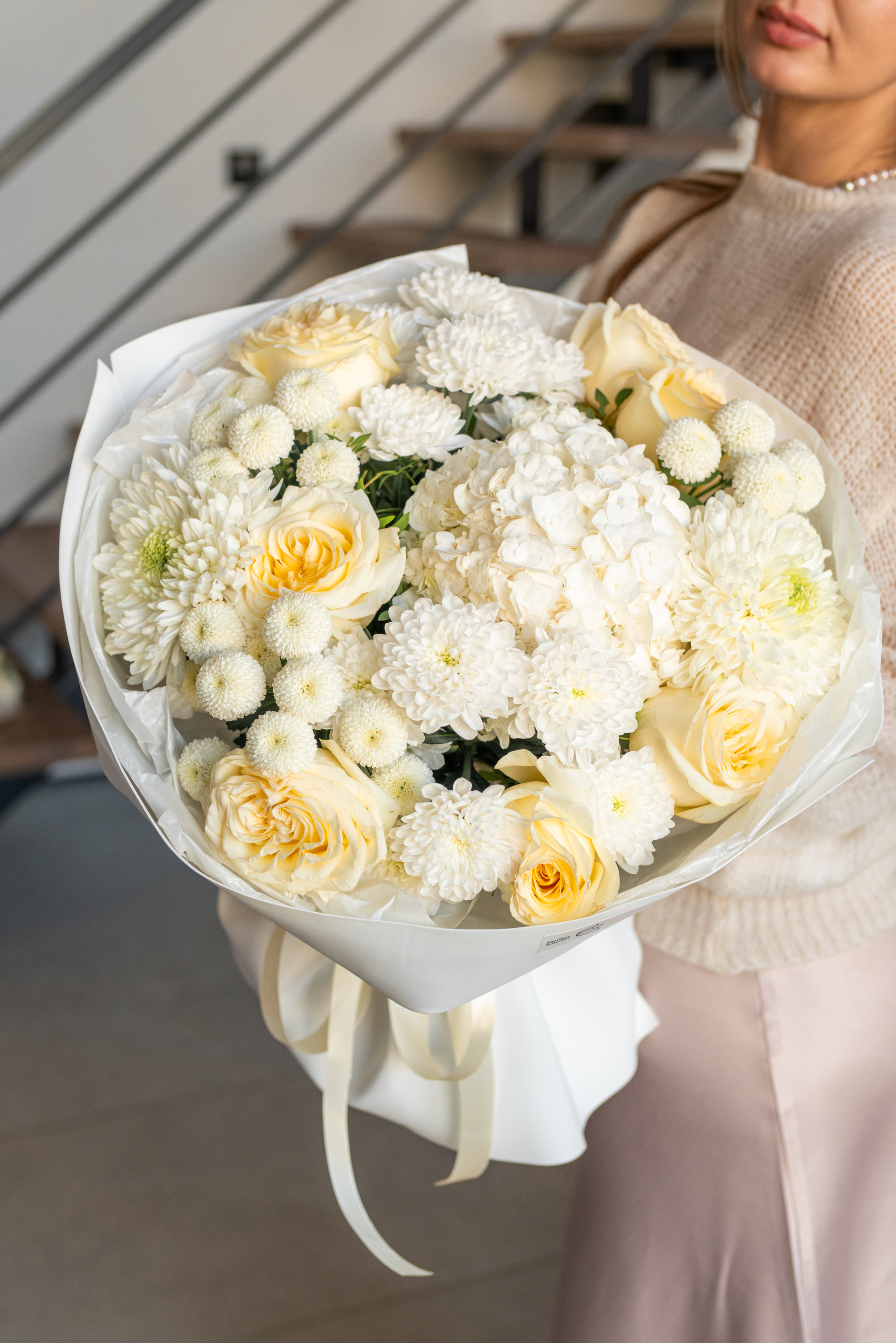 Кремовый букет — это олицетворение теплоты, благородства и искренних чувств. Название «От всего сердца» точно отражает суть композиции: это не просто подарок, а сердечное послание, где каждый цветок говорит о внимании, уважении и душевной близости.