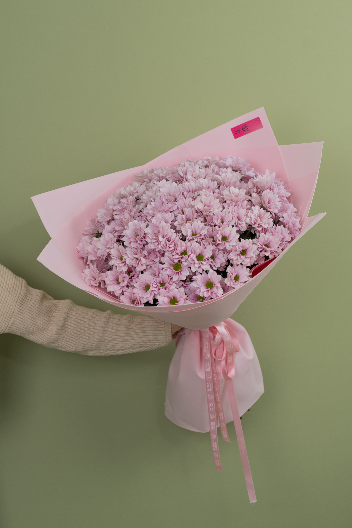Букет в размере М и L доставляются в Коробке - Трапеции, или в Фирменном пакете, и в Аквабоксе.