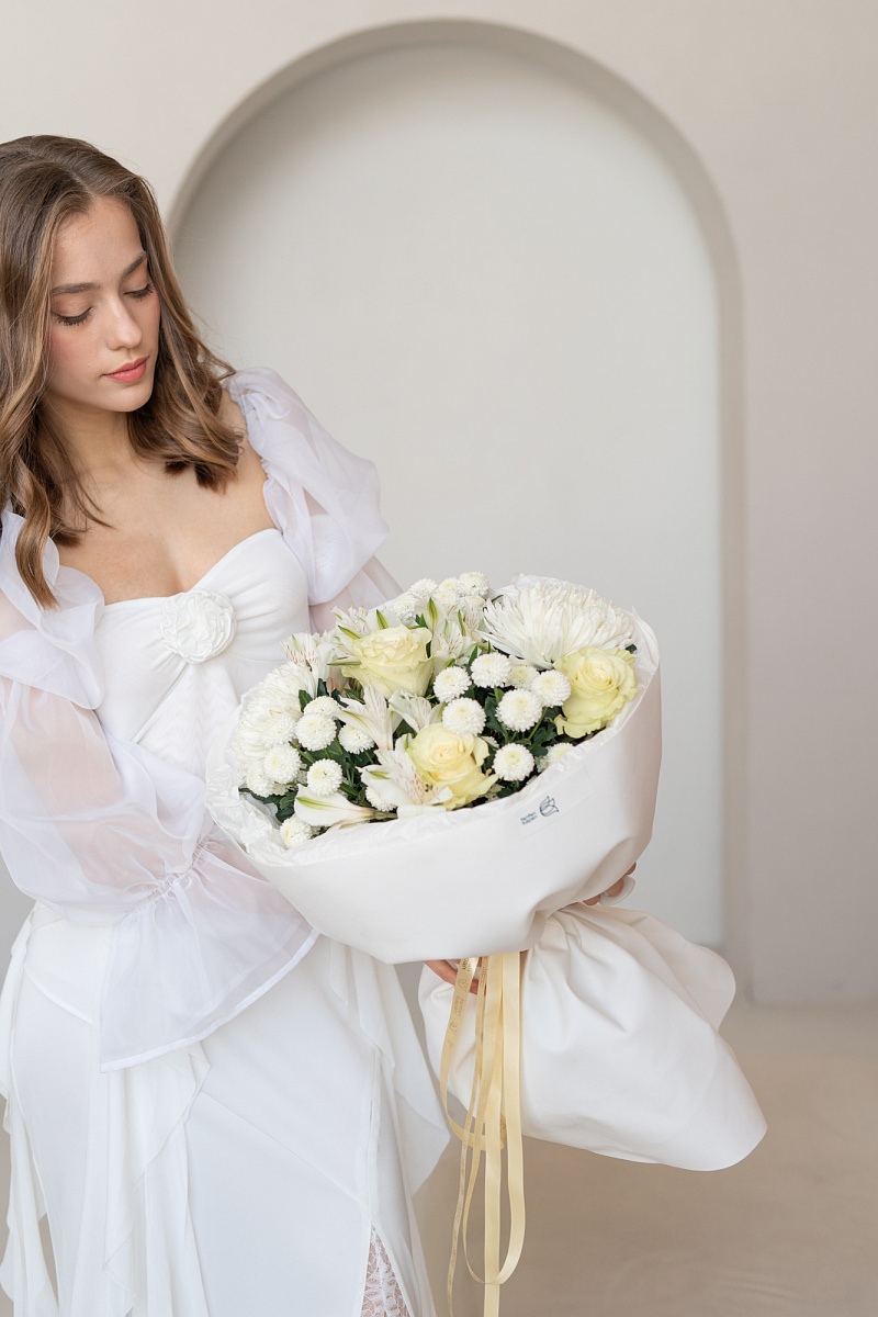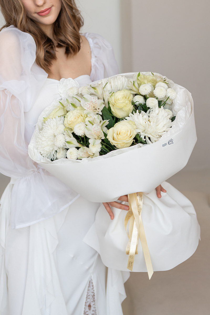Этот сборный букет — не просто композиция из цветов, а искреннее послание, которое говорит больше, чем любые слова. Тщательно подобранные оттенки и формы создают гармоничное сочетание, способное передать самые тонкие оттенки чувств: от трепетной нежности до глубокого восхищения.