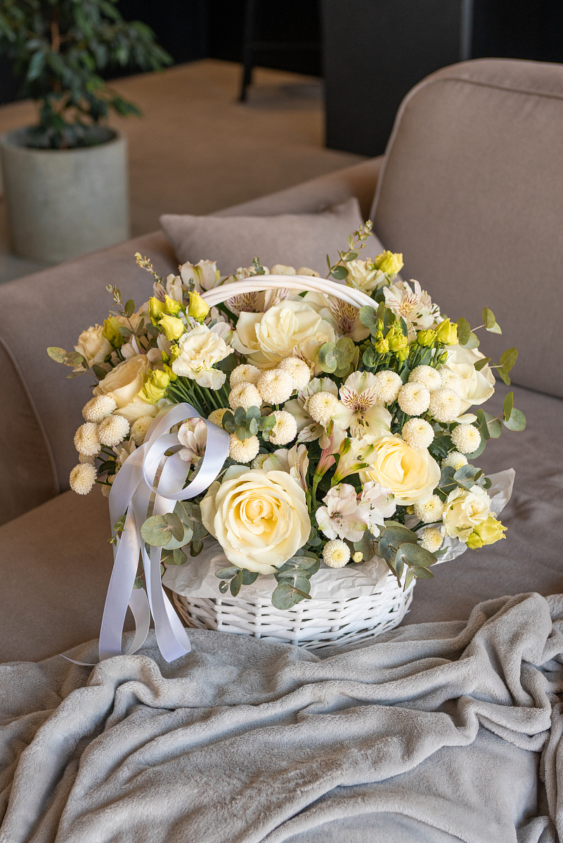 Эта корзина — не просто букет, а тёплое объятие, воплощённое в цветах. Композиция создана, чтобы сказать маме самое главное: «Я люблю тебя, ценю и благодарю за всё».