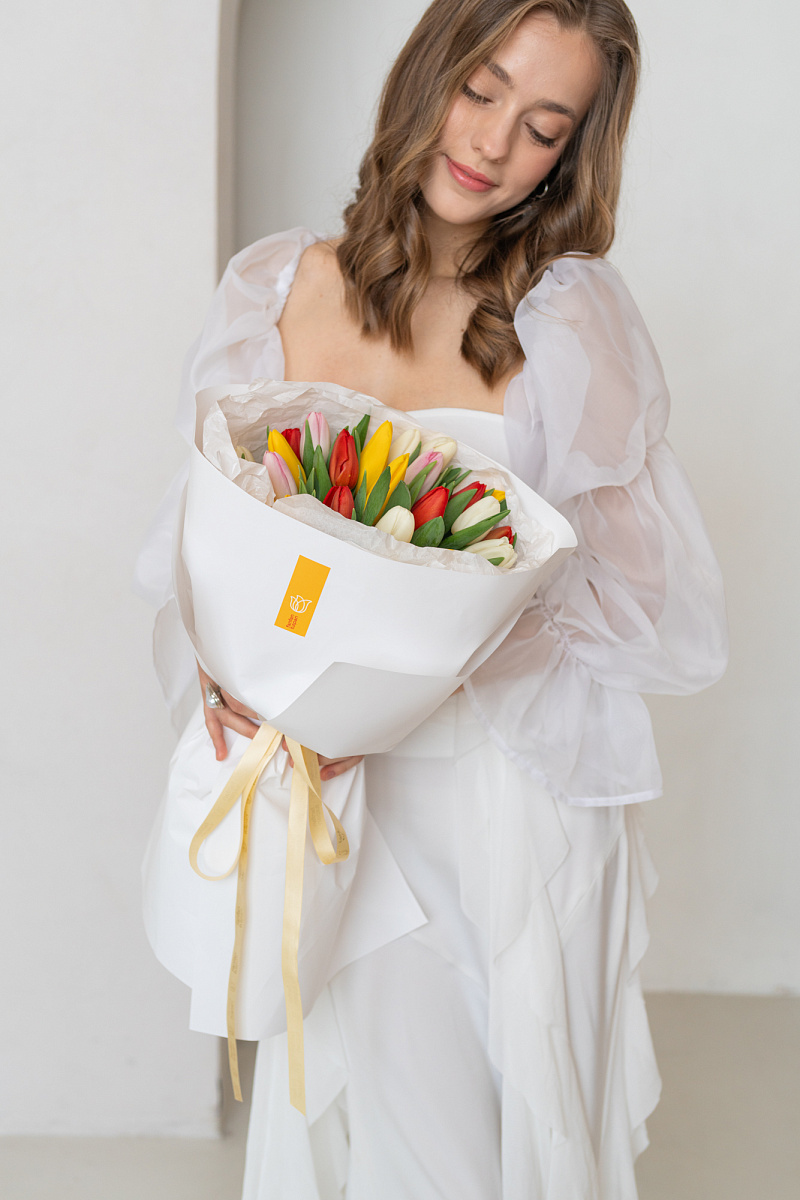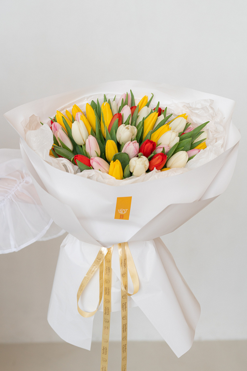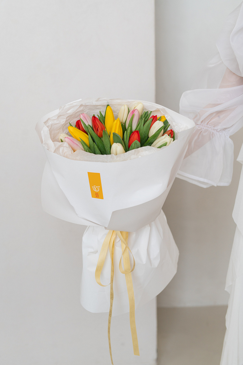 Яркий и жизнерадостный букет из тюльпанов‑микс — это весенняя симфония цвета и нежности в одной композиции. Сочетание разных оттенков создаёт динамичный, но гармоничный образ, способный передать целую гамму чувств: от тёплого привета до искреннего восхищения.
