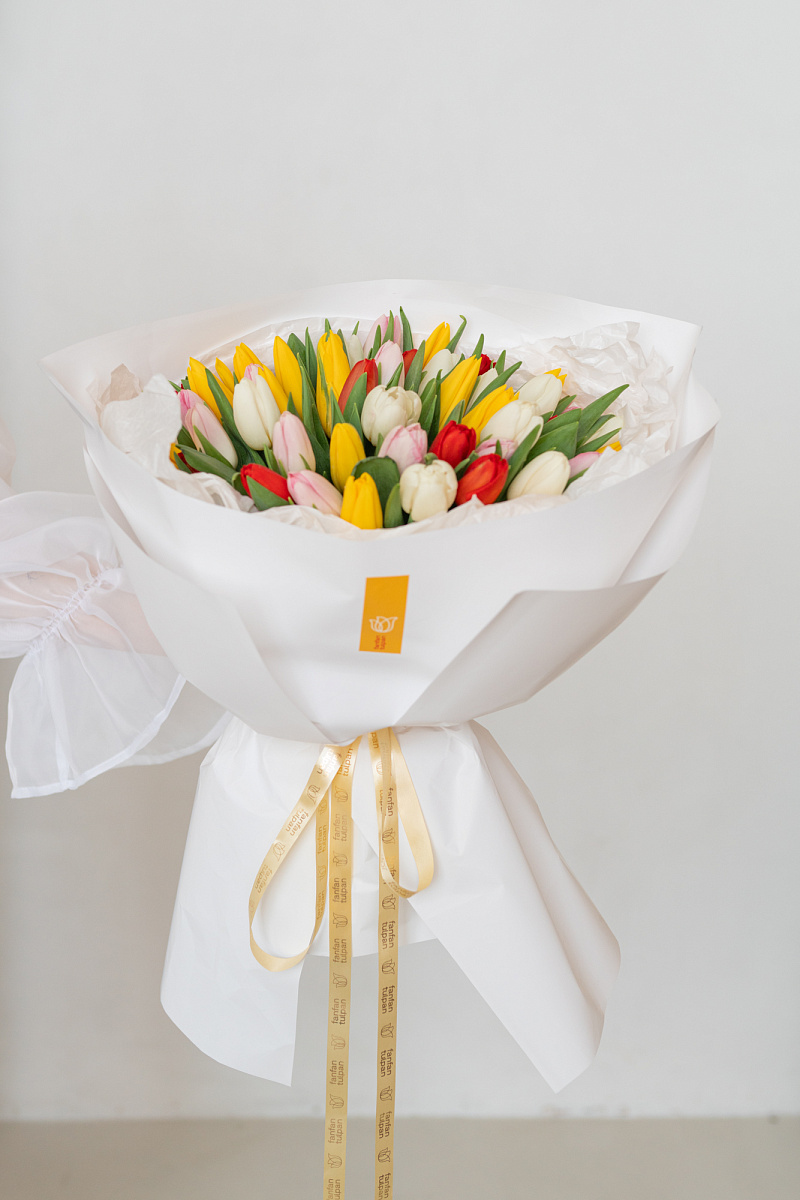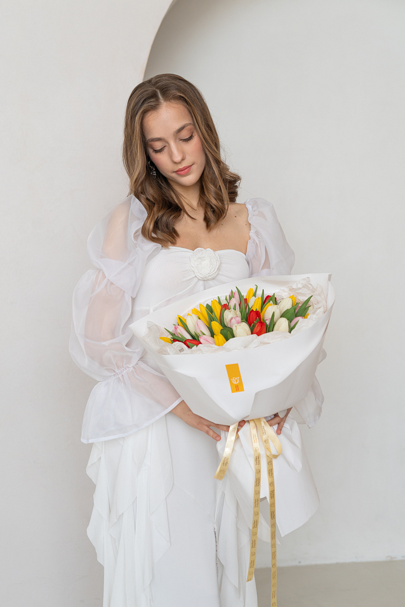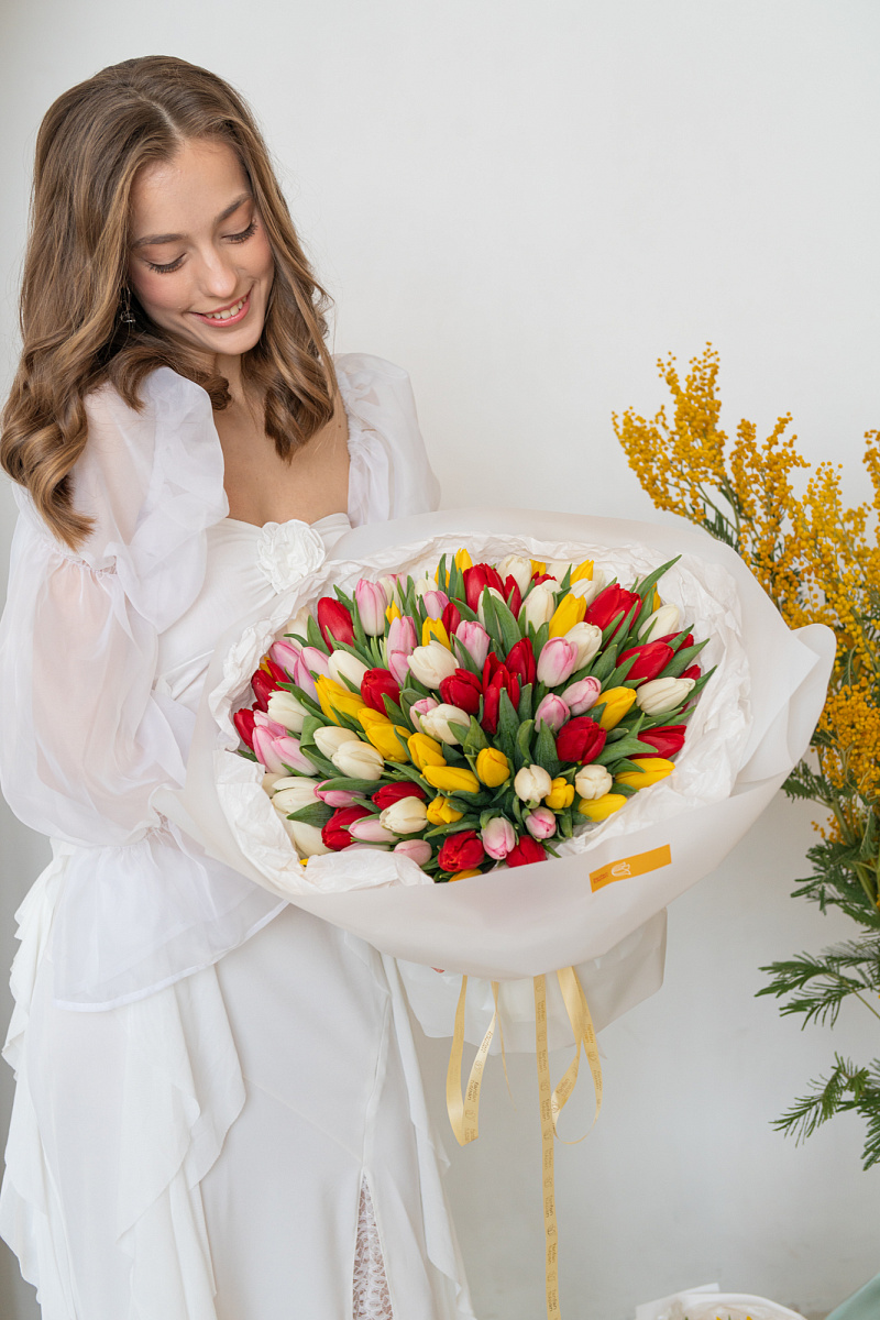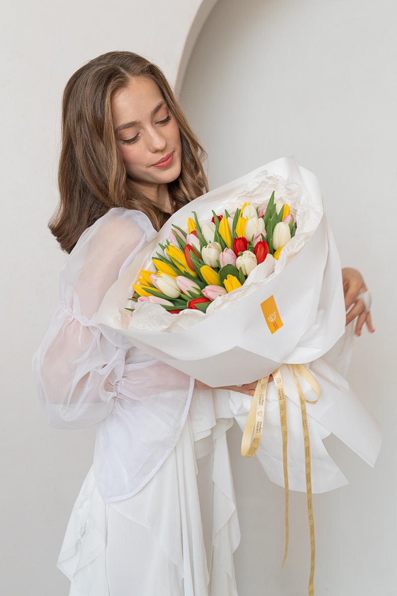 Яркий и жизнерадостный букет из тюльпанов‑микс — это весенняя симфония цвета и нежности в одной композиции. Сочетание разных оттенков создаёт динамичный, но гармоничный образ, способный передать целую гамму чувств: от тёплого привета до искреннего восхищения.