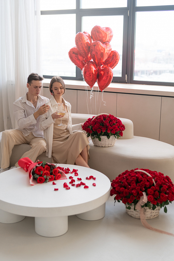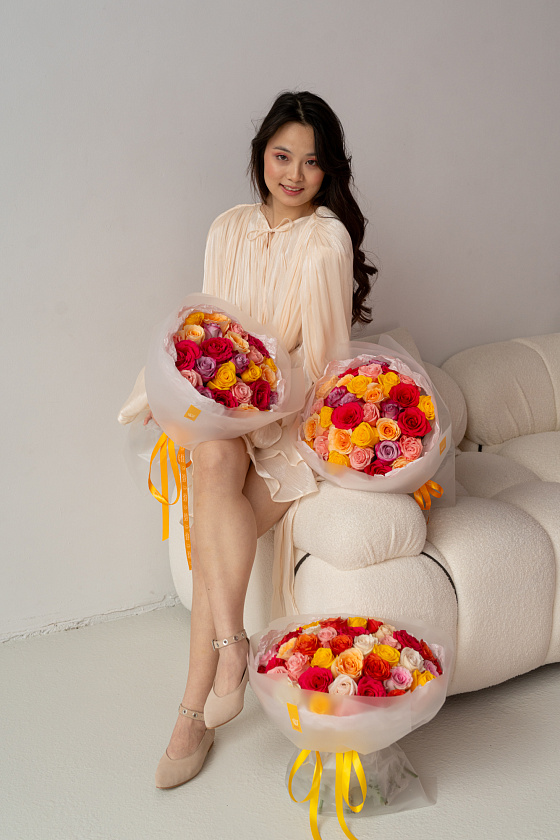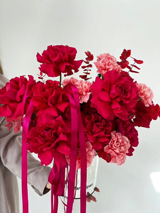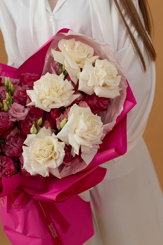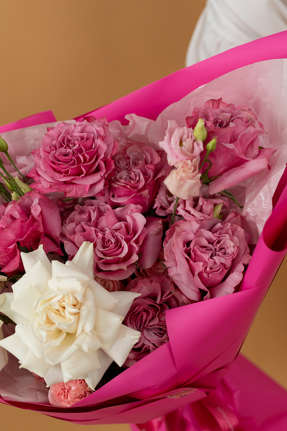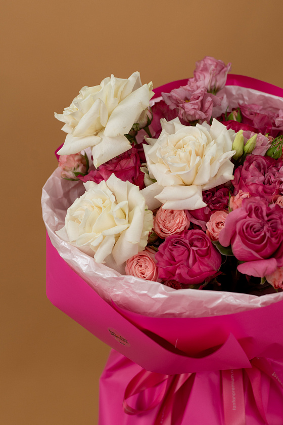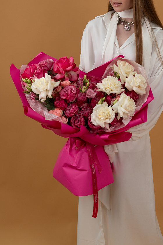 На стоимость композиции влияет упаковка, сорта, количество цветов, присутствие зелени или декоративных элементов. Цены располагаются под каждым товаром на сайте.