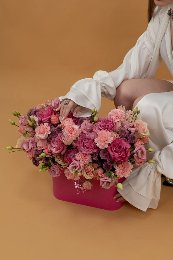 Собираем изысканные моно- и микс-композиции в корзинах, крафте, ящиках и шляпных коробках.